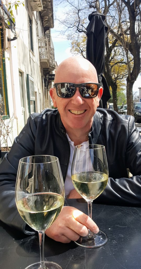 Our last stop, the Príncipe Real district, is known as being a bit arty, beloved of artists and designers and home of the gay scene. It’s full of interesting galleries and boutiques and cute little restaurants. On a glorious April day it was busy with locals out and about, browsing the shops and meeting for drinks. The atmosphere here is great. We were sitting outside a bar watching the world go by when Tony noticed the waiter struggling with a barrel. He got up to help, being an obliging kind of guy (sometimes). A few minutes later, the waiter came out with two glasses of wine on the house. That wouldn’t happen in Paris or London!