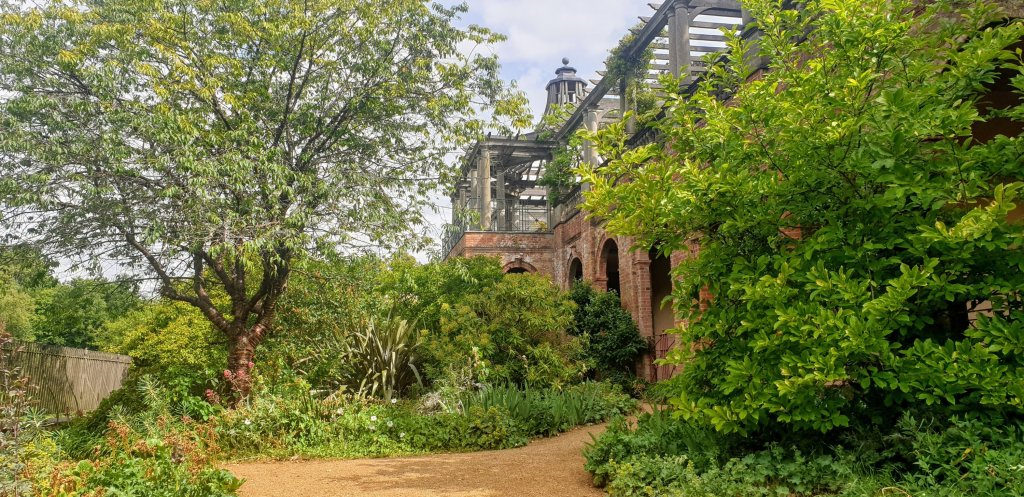 Just a few metres along the path we come across The Hill Garden and Pergola, unfortunately closed due to Covid 19. This lovely structure was conceived by Lord Leverhulme as a setting for extravagent garden parties at his neighbouring mansion, The Hill. Construction started in 1905 using soil from the excavations of the Northern Line of the underground railway. It’s a spectacular venue for a party – I could just imagine myself here with a glass of Pimms and a cucumber sandwich.