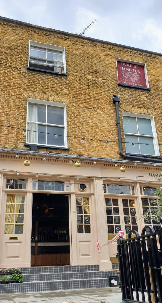 Our next landmark is one of Hampstead’s most famous pubs, which has been serving alcohol since 1721. It was a popular destination for cockneys wanting a ‘healthy’ day trip in the fresh air and music hall star Florrie Forde celebrated this in her well- known song…Come and have a drink or two down at the Old Bull and Bush. No drinks today I’m afraid – it’s shut.