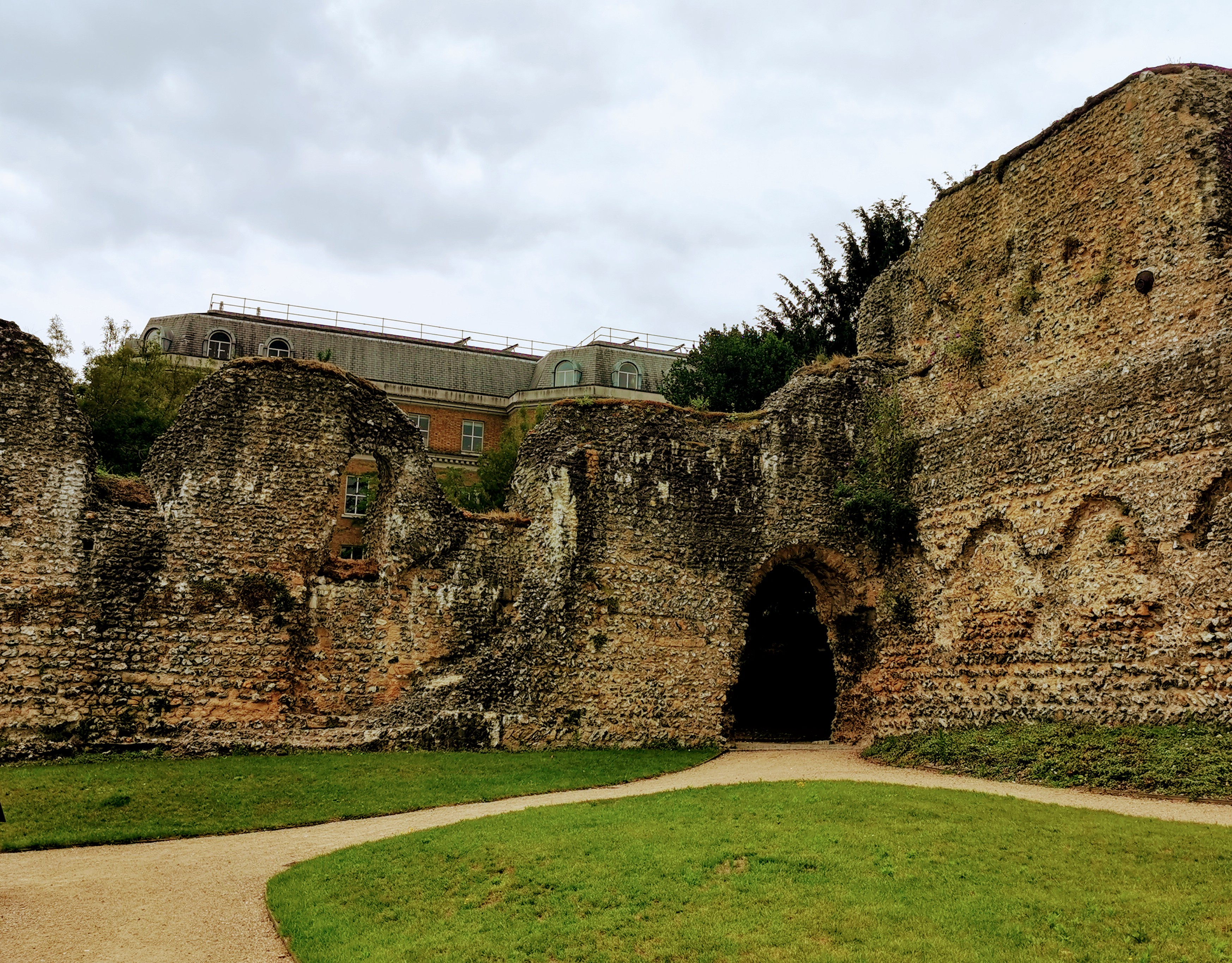 The walkway leads to the entrance of Reading Abbey, founded in 1121 by Henry I. It’s ruined now, but in medieval times it was one of the richest religious houses in England, and an important pilgrimage site. Then along came Henry VIII (yes, him again!) with his Dissolution of the Monasteries. In 1538 the Abbey was mostly destroyed and the poor abbot was hung, drawn and quartered in the grounds. As for the riches, Henry took them, of course. The Abbey was renovated and opened to the public in 2018, and this is my first visit. It’s quite impressive, even after all those years of decay.