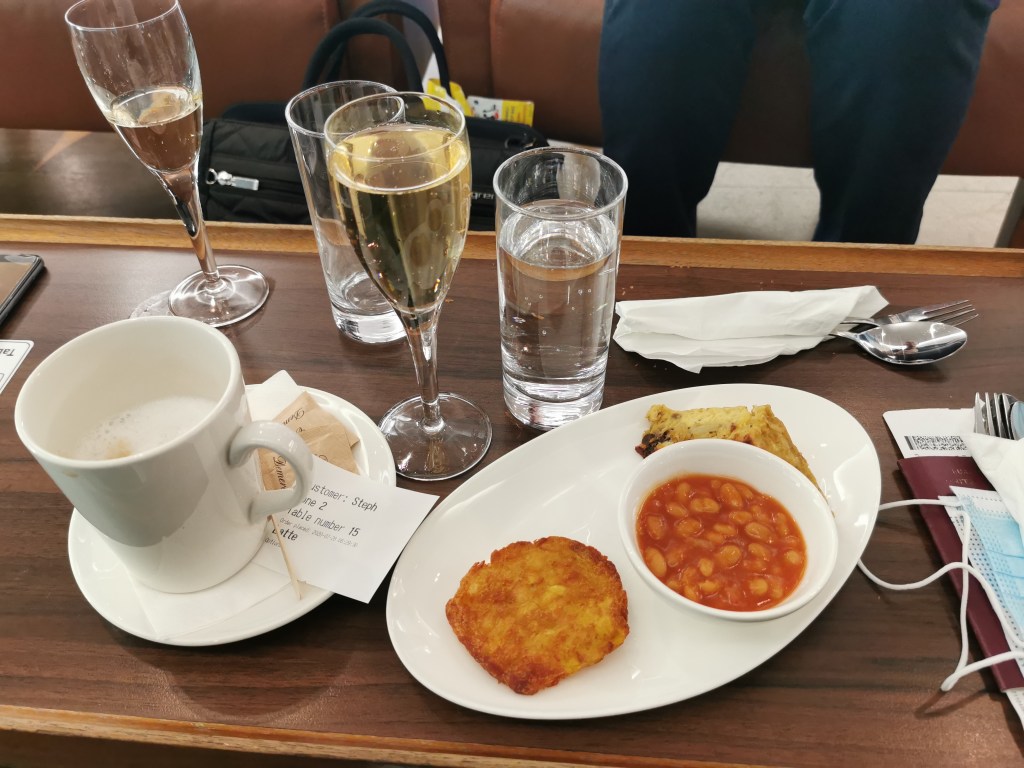 Yes, of course I order champagne with my breakfast – holiday rules apply once you’re at the airport! I think I prefer the new system compared to the old buffet style, but it may not work so seamlessly when things are busier. And I’m definitely not imagining things, the staff here are jolly too. It’s not just me who’s glad to see travel ramping up again, no doubt they are feeling more confident about keeping their jobs now.