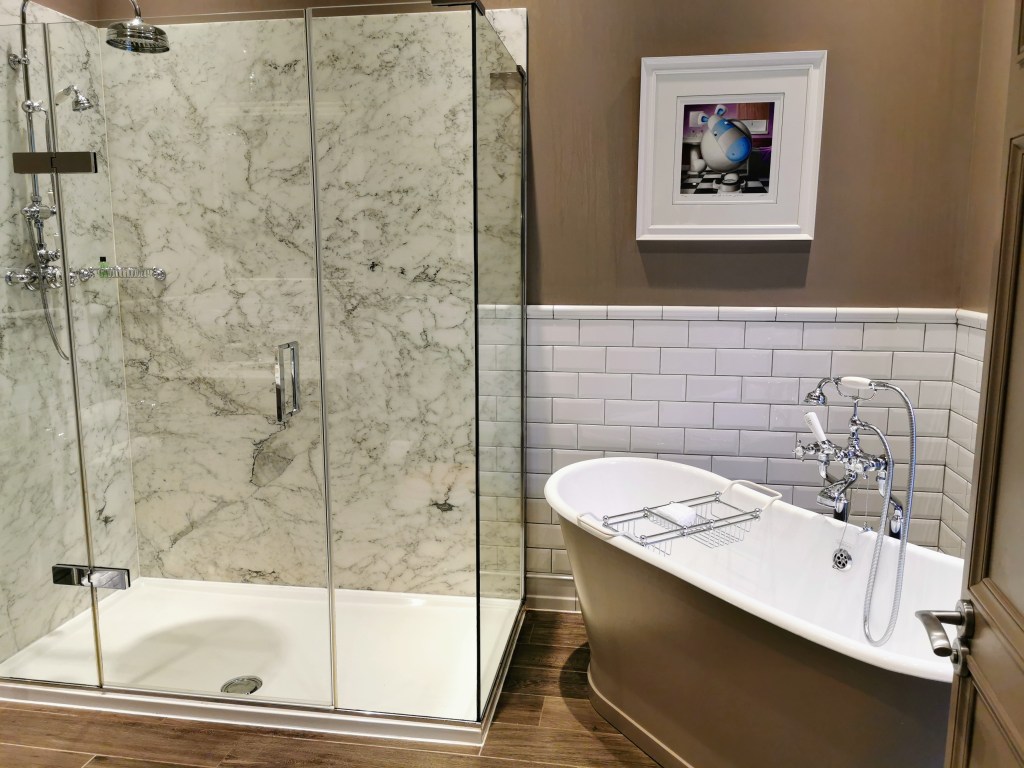 Our room is at the front of the hotel, so there is a bit of noise from the road. But it’s big and tastefully decorated, with a very stylish bathroom. There’s also plenty of free spring water in the fridge, which gets a huge tick from me. My pet hate when travelling is stinginess with basic necessities. There is always a definite possibility that I will need to hydrate at some point due to my penchant for gin and wine. And no, I don’t want to drink tap water, thanks.