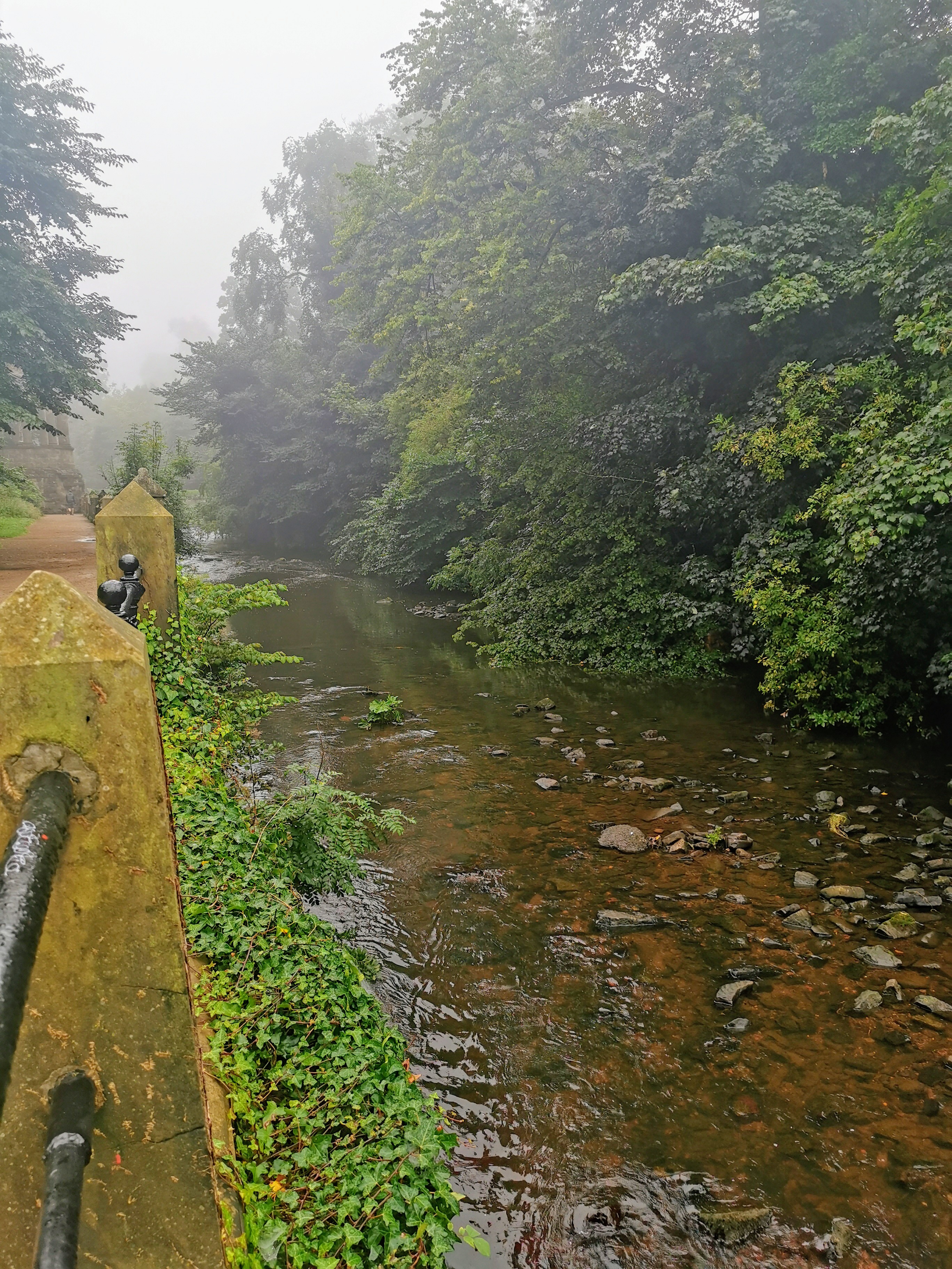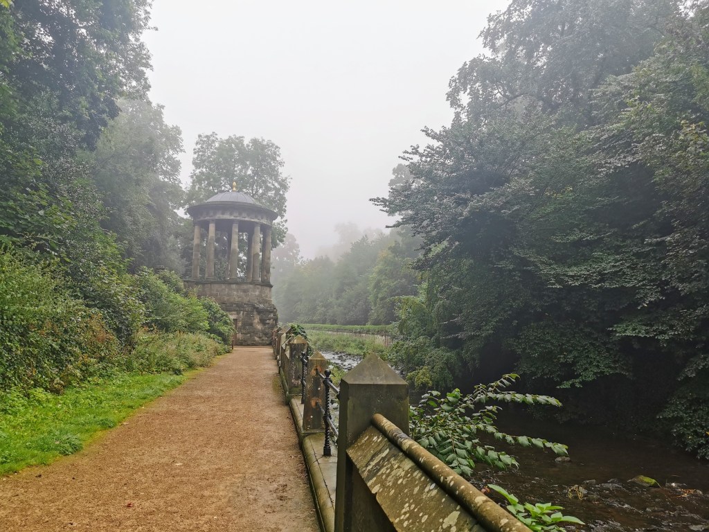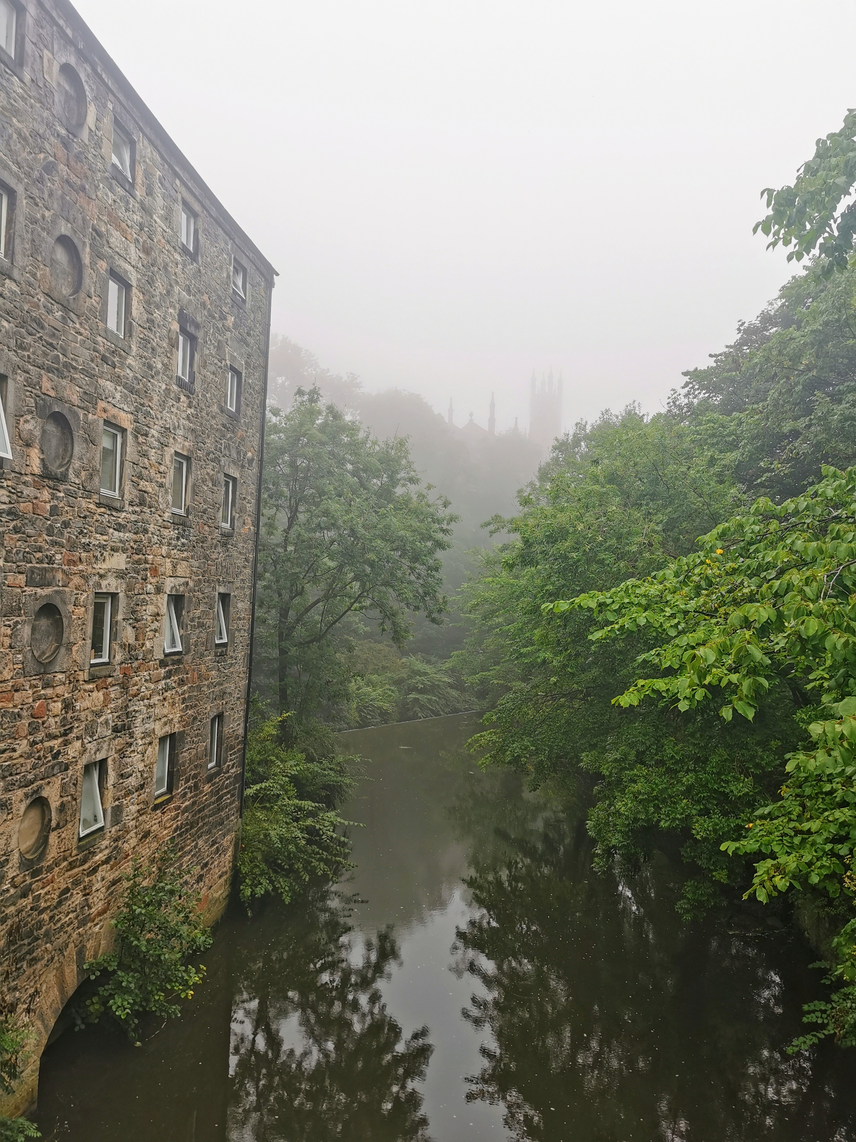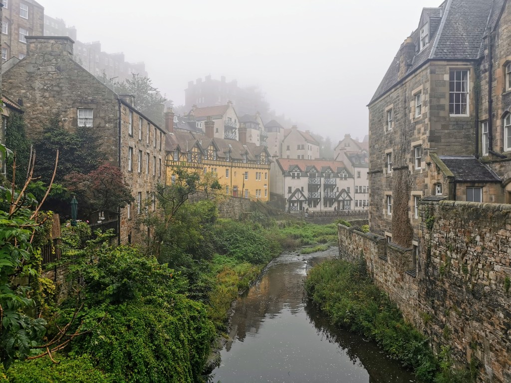 My first thought upon arriving in the village is that I could almost be in Colmar, in northeastern France. The view along the river has a distinct air of Alsace. Originally an industrial enclave of watermills, this area is now residential and feels frozen in time and a long way from the city centre, despite being only a short walk from Princes Street. We’re not heading that way though – we continue westwards along the water through the mist.
