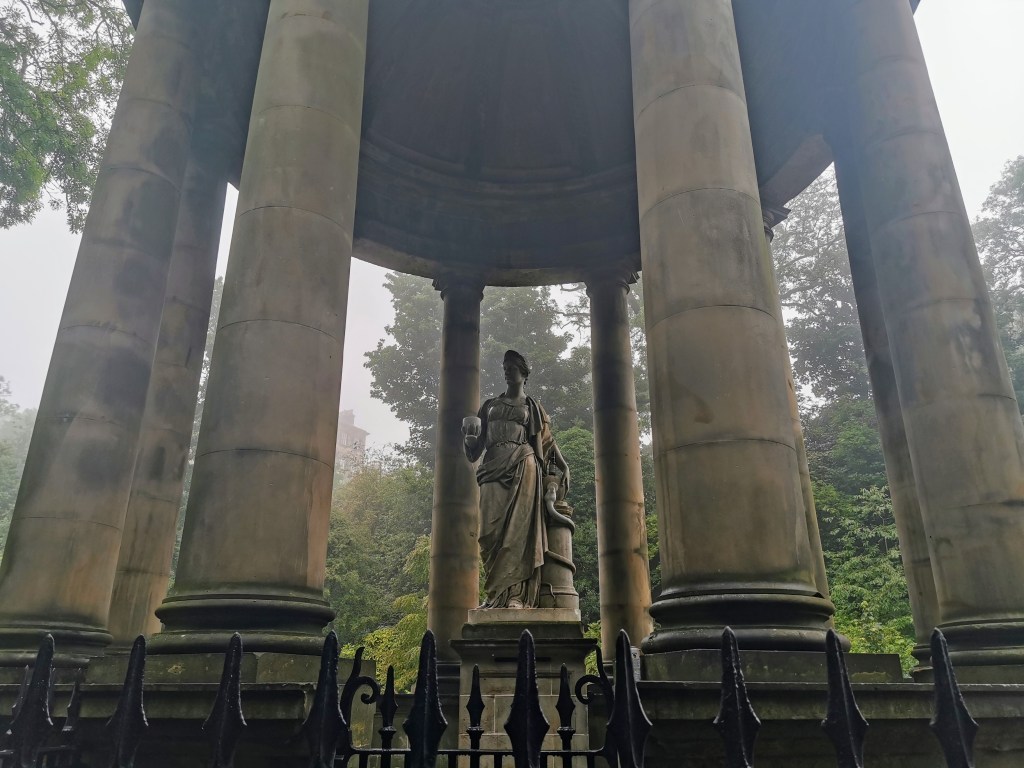 We pass St Bernard’s Well, where a statue of the Greek goddess of health stands atop an old pump house. A natural spring was discovered here in the 18th century and soon developed a reputation for healing properties. As more people came to take the waters, the pump house was built to accommodate their needs, and an imposing temple-like structure was erected above it. No sign of anyone lining up for healthy water today.