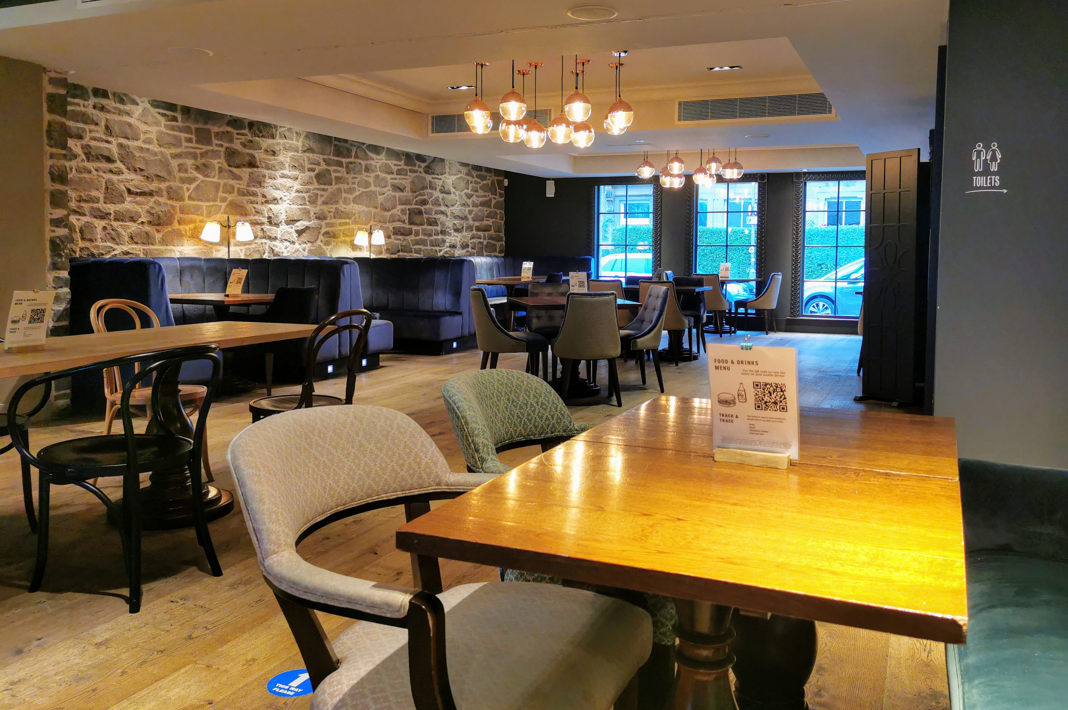 An elegant Georgian house built in 1832, The Raeburn has been tastefully converted into a ten-bedroom boutique hotel, with a large bar and restaurant that are popular with locals. We arrive at lunchtime and every table is full. The welcome is enthusiastic, despite the clunkiness required due to the pandemic – walk this way, don’t stand there etc. The staff here are friendly enough to make it a very minor inconvenience.