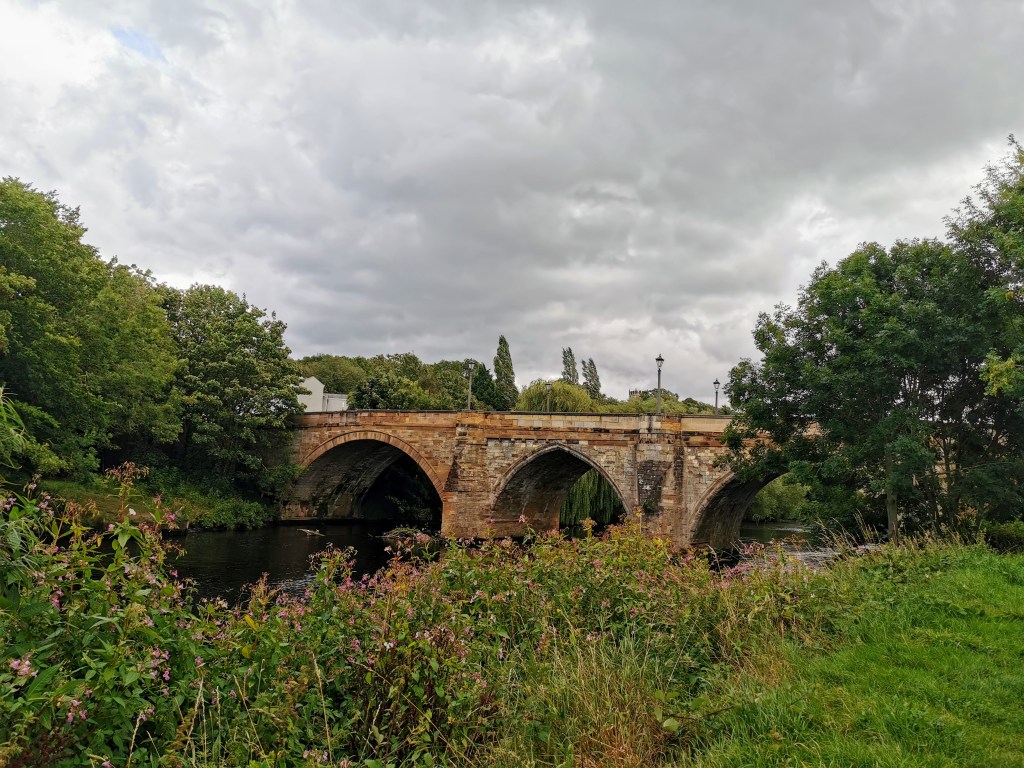 We walk in what we think is the right direction, but end up on the banks of the river Tees without spotting any castle-like structures. The walk along the water is lovely, but there are no fortifications of any kind to be seen, although we do get a great view of the old bridge as we pass underneath and skirt the eastern side of town. Honestly, this is like the search for the Scarlet Pimpernel!